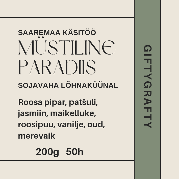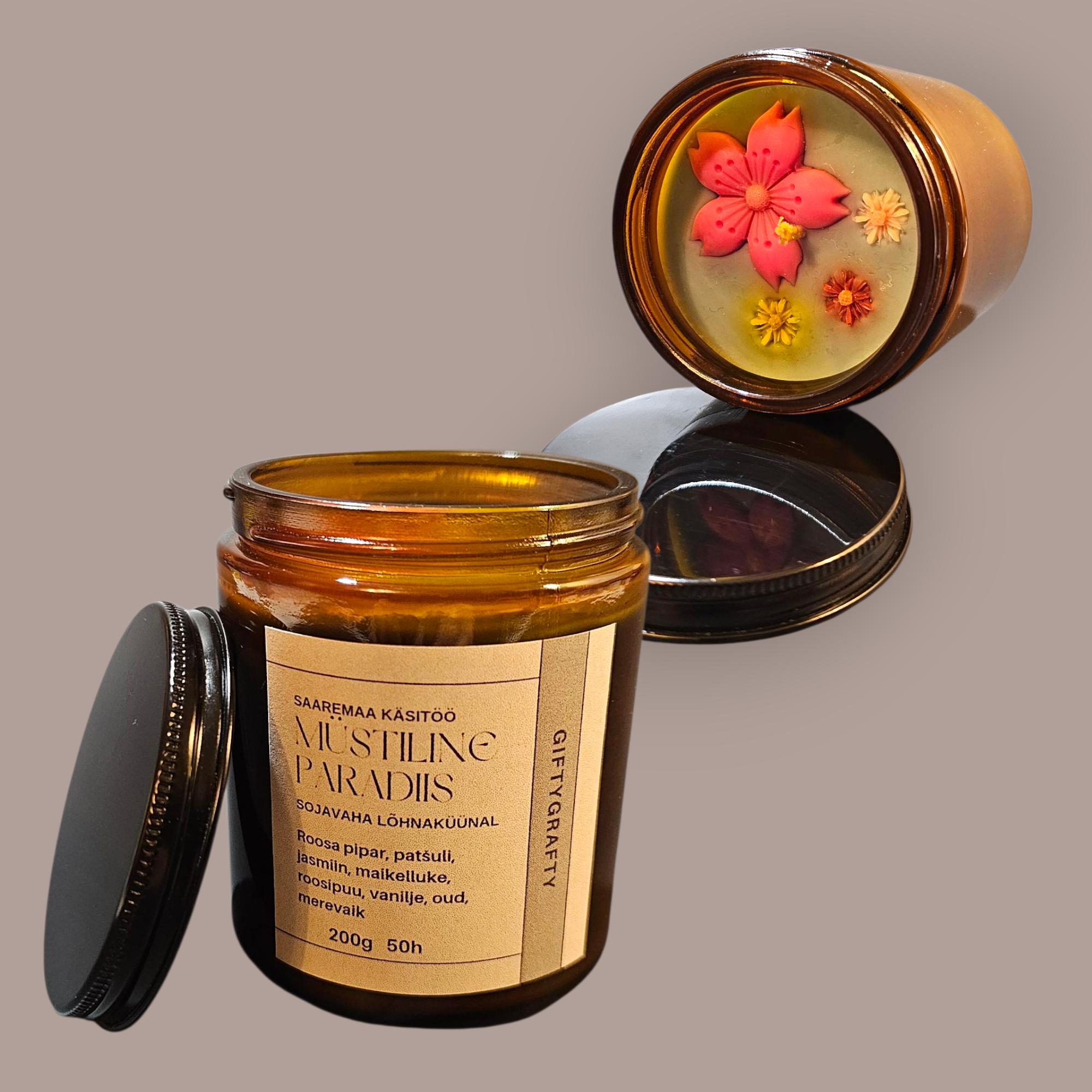 Avasta Müstiline Paradiis – küünal, mis viib sind lõhnade kaudu otse idamaade salapärasesse paradiisi. Vürtsikas, värske ja magus aroom loob lummava atmosfääri, mis paitab meeli ja rahustab hinge.