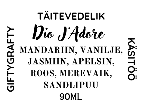 Dio J’Adore 90 ml täitevedelik toob ruumi ja autosse naiseliku ning peene aroomi, mis on inspireeritud ikoonilisest parfüümist. Lõhn loob rahuliku, romantilise ja luksusliku meeleolu.
