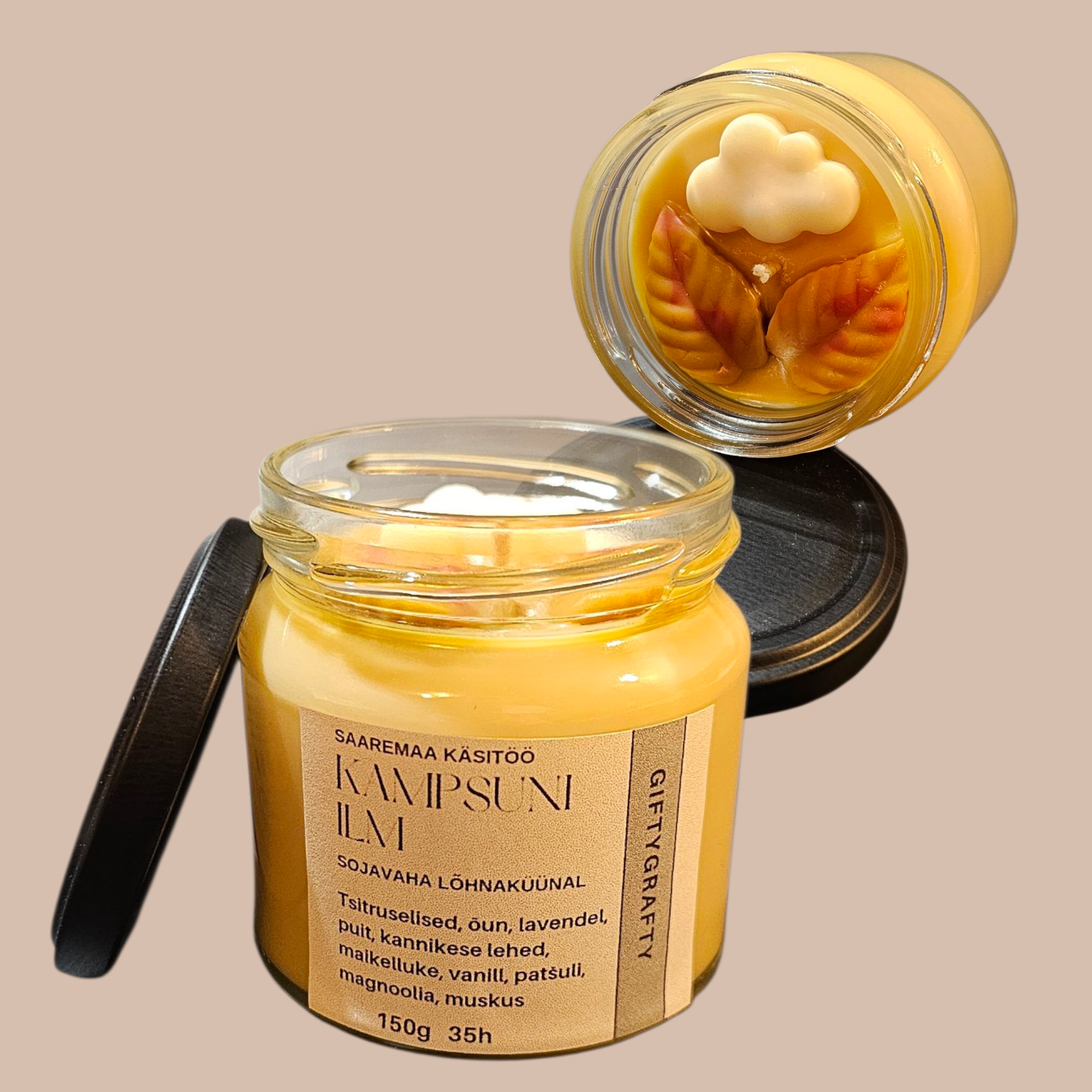• Valmistatud käsitööna kvaliteetsest sojavahast