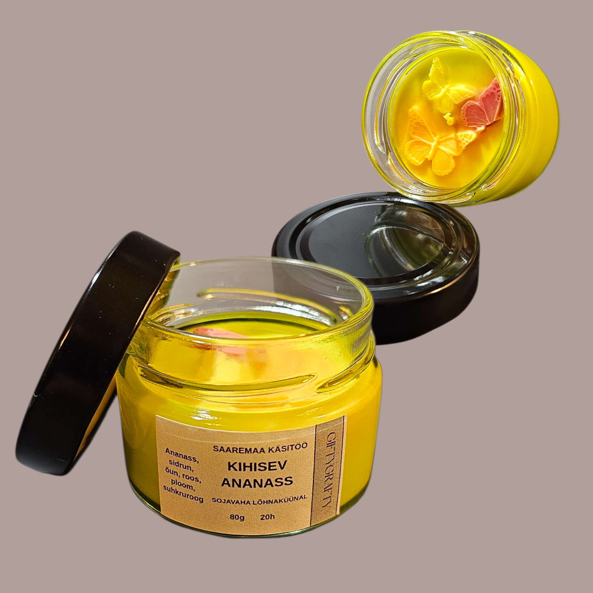 - Valmistatud looduslikust sojavahast
