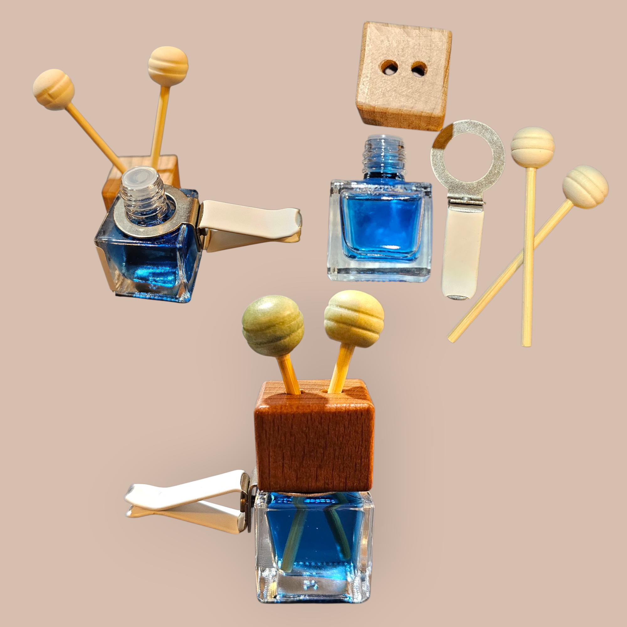 Kasutamine: Eemalda puidust kork ja stopperkork. Paigalda puhuri kinnitusklamber, keera puidust kork tagasi peale ja lisa pulgad. Kinnita lõhnastaja auto ventilatsiooniavasse.