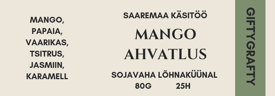 Mango on meie kõige populaarsem küünal – ja põhjusega. See ühendab endas mahlase mango värskuse, millele lisandub karamelline magusus baasnoodist. Tulemus on troopiline, samas pehme ja koduselt kutsuv.