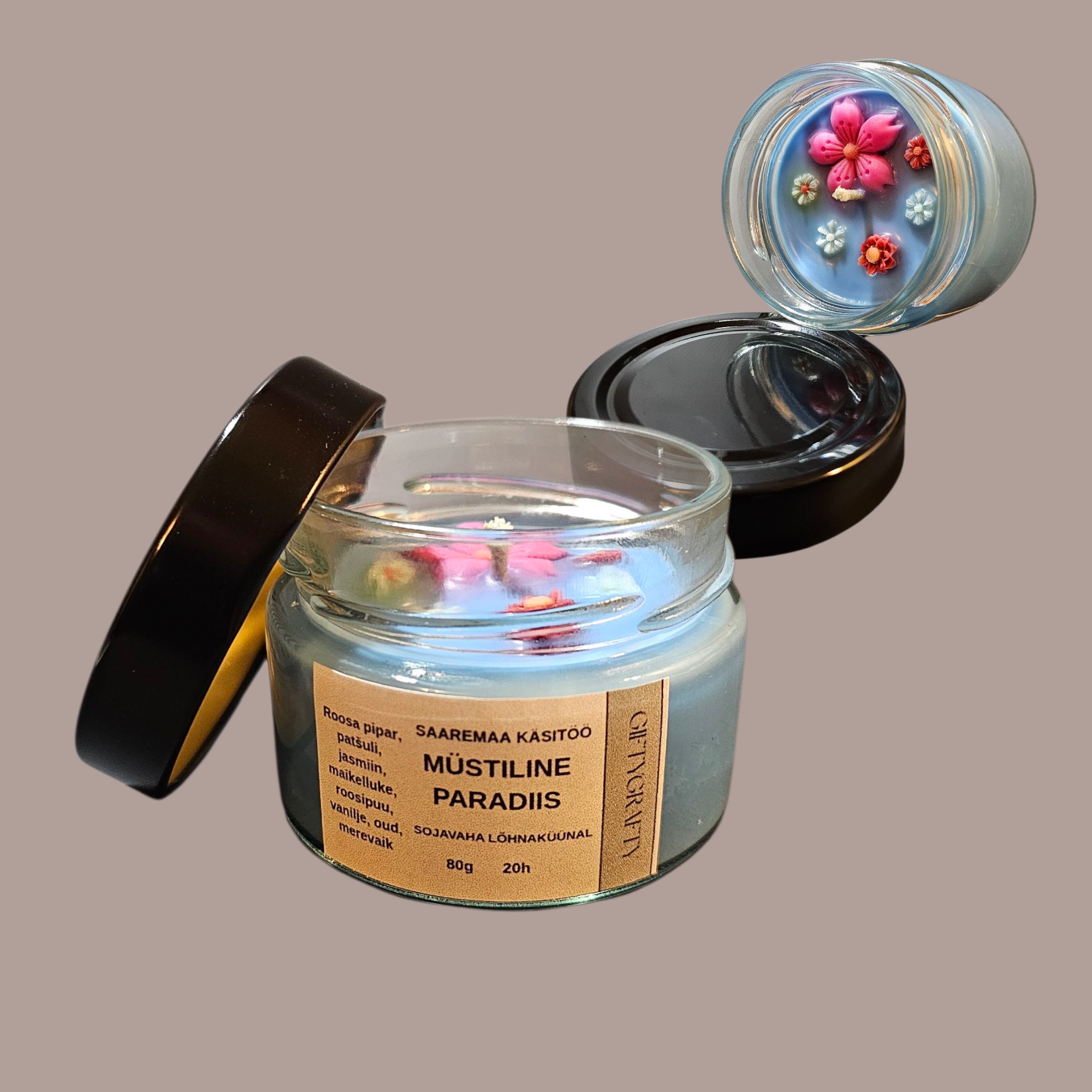 Avasta Müstiline Paradiis – küünal, mis viib sind lõhnade kaudu otse idamaade salapärasesse paradiisi. Vürtsikas, värske ja magus aroom loob lummava atmosfääri, mis paitab meeli ja rahustab hinge.