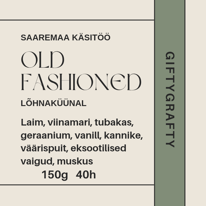 Old Fashioned on küünal neile, kes hindavad klassikat, sügavust ja rafineeritud lõhnakogemust. Laimi ja viinamarja värskus avab kompositsiooni, millele järgneb lilleline pehmus. Baasnoodid toovad esile tubaka, väärispuidu ja eksootiliste vaikude luksusliku sügavuse, mida täiendab kookos, muskus ja vanill.