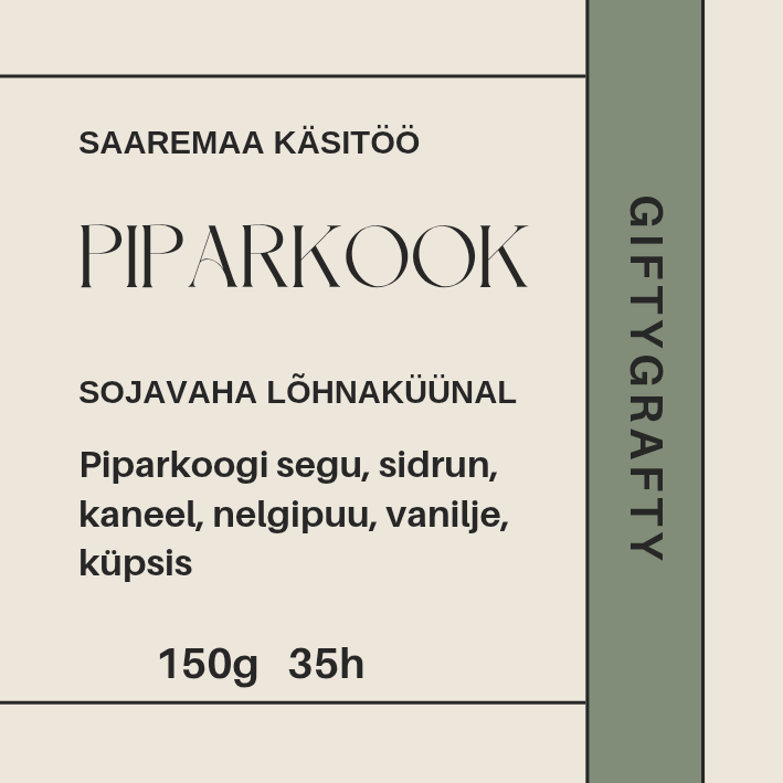 Hubane talveklassika sinu kodus! Piparkook ühendab endas vürtsika kaneeli ja nelgi südamlikkuse, millele lisandub vanilje ja küpsise magus soojus. Tipunootides särab piparkoogine vürts koos sidruni värskusega, tuues ruumi jõululiku ja koduse meeleolu.